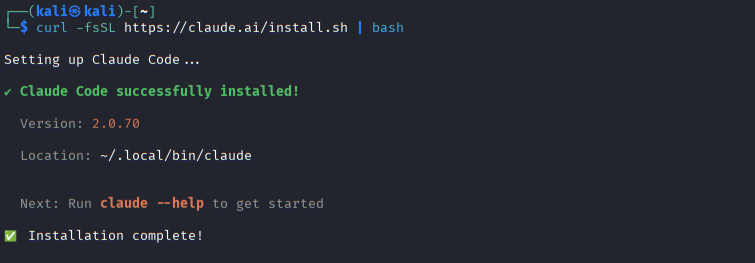 Claude Code installation on Kali Linux