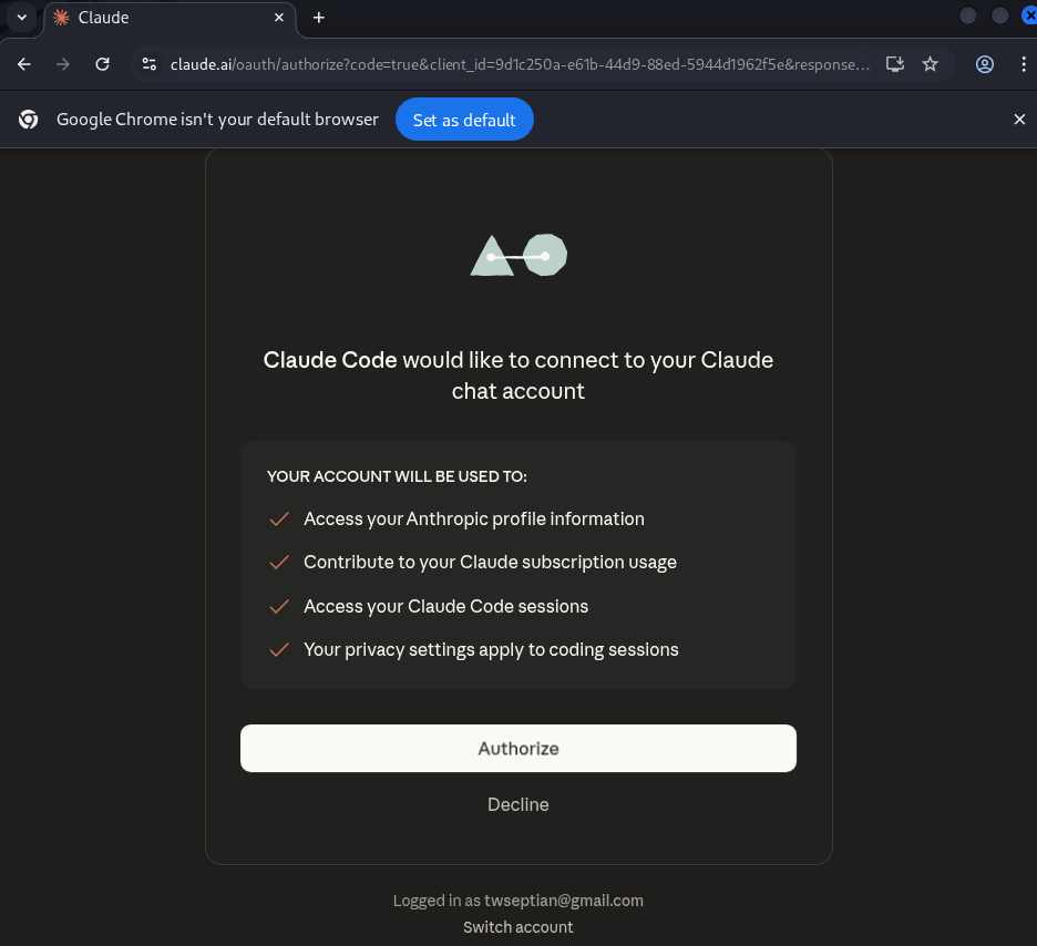 OAuth authorization flow in the browser to securely connect Claude Code with the user’s Claude account.