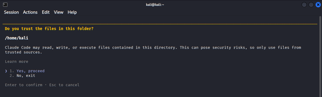 Allowing an AI to execute commands locally deserves caution, even in a controlled lab. Claude Code mitigates risk by requiring explicit permission boundaries, but responsibility still sits with the operator. The tool should only be used in environments you own or are authorized to test, and its access should be limited to the minimum necessary to complete the task.