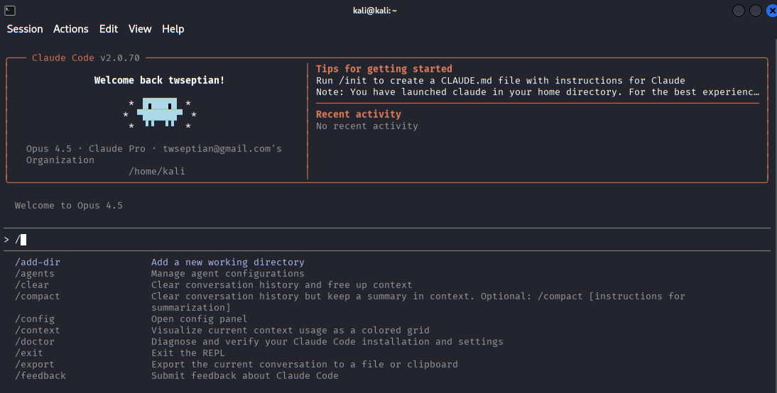 Installing Claude Code is refreshingly uneventful, which is exactly what you want when introducing AI into a security workflow. The tool is distributed via command line https://claude.com/product/claude-code, using an API key or subscription (Pro) for model access while keeping execution under your control.